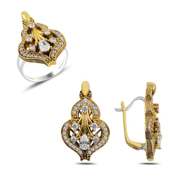 Gümüş 925 Ayar Zirkon Taşlı Otantik Set
