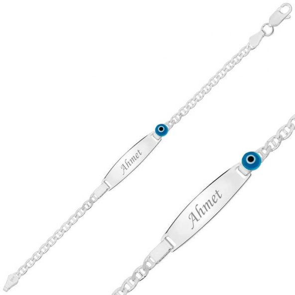 Gümüş Mavi Boncuklu Plaka Çocuk Bileklik