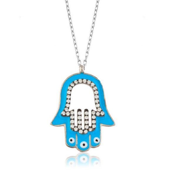 Gümüş Mavi Fatma Eli Bayan Kolye