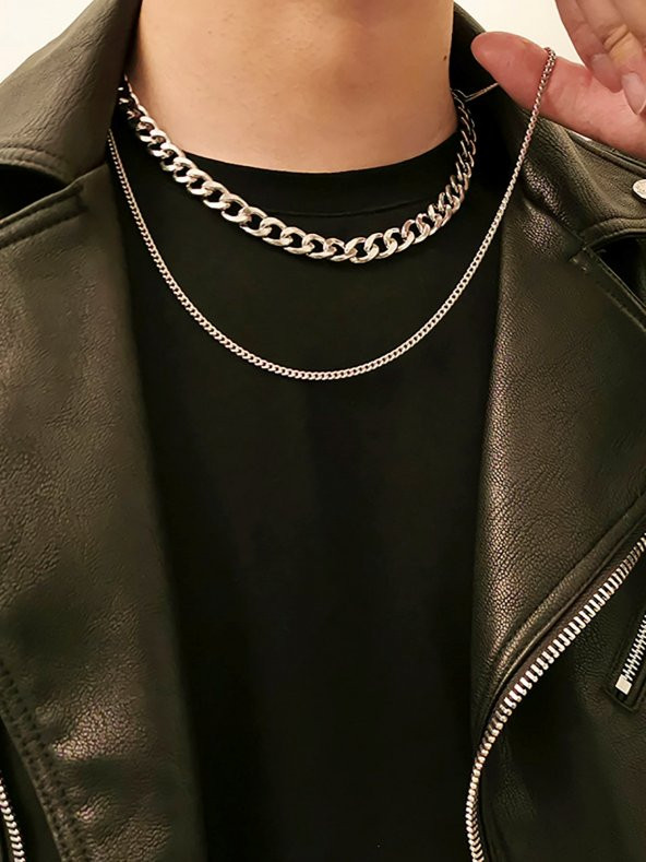 Gümüş Rengi Gerdanlık Kolye Unisex Katlı Cadena Kolye