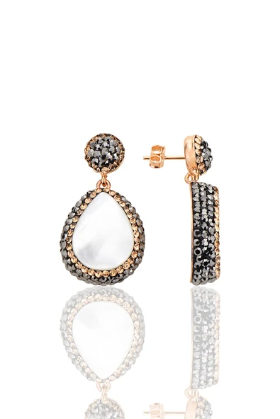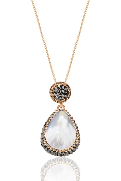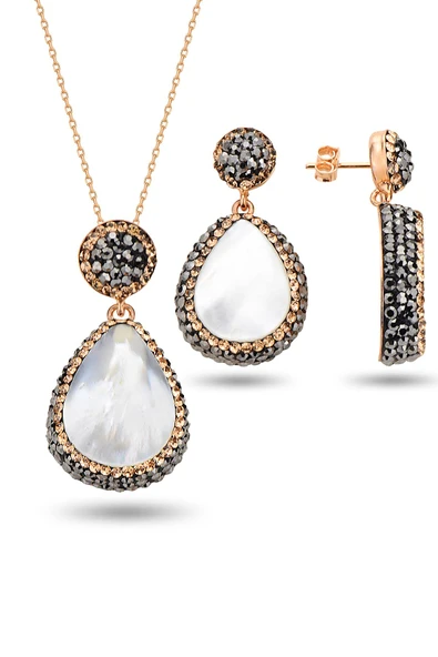 Gümüş rose inci ve zirkon taş ile bezenmiş damla modeli kolye ve küpe ikili set SGTL12730BEYAZ