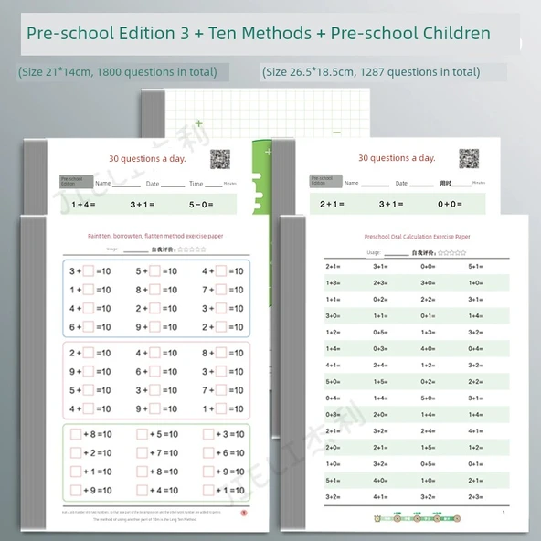 Günlük Aritmetik Alıştırma Kitabı - Okul Öncesi - 30 Soru [3 Versiyon] + On Yöntem + Çocuklar
