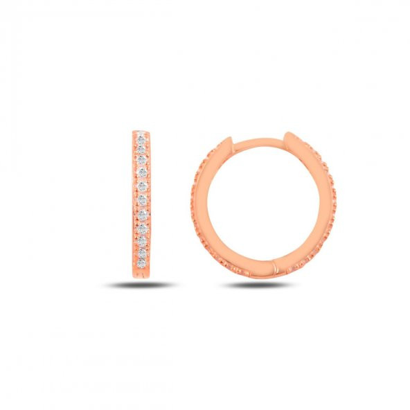 Ana Sayfa Takı & Gözlük & Saat Gümüş Kadın Gümüş Küpe Halka Model Tek Sıra Taşlı Rose Rengi Gümüş Küpe 18 Milim