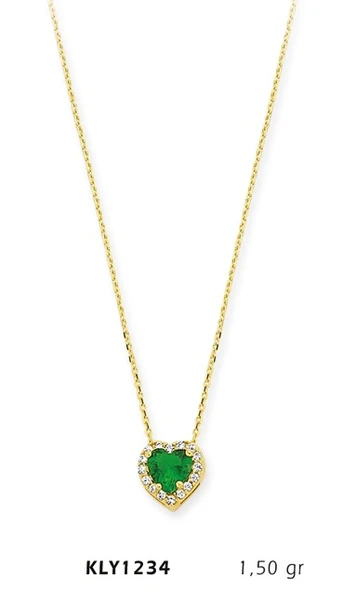 14 Ayar Altın Yeşil Taşlı Kalp Kolye KLY1234