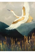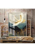 Harikabirev HARİKABİREV|ALTIN SARISI KUŞ SETİ SOYUT ORTA |ÇERÇEVELİ TEMPERLİ CAM TABLO TEKLİ DİKEY