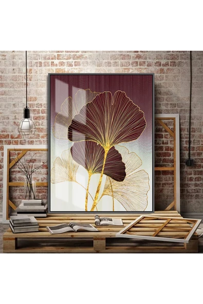 Harikabirev HARİKABİREV|BORDO-GOLD SONSUZLU ÇİÇEĞİ KOMBİNİ SOL |ÇERÇEVELİ TEMPERLİ CAM TABLO TEKLİ DİKEY