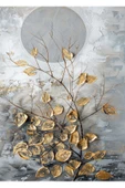 Harikabirev HARİKABİREV|GOLD-GRİ YAPRAK DESENLİ SOYUT MODEL 1|ÇERÇEVELİ TEMPERLİ CAM TABLO TEKLİ DİKEY