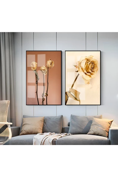 Harikabirev HARİKABİREV|GÜL KURUSU-KREM GÜL KOMBİNİ 01 |ÇERÇEVELİ CAM TABLO 2Lİ DİKEY