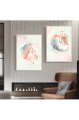 Harikabirev HARİKABİREV|PEMBE-MAVİ-KREM DESENLİ SOYUT KOMBİNİ 01|ÇERÇEVELİ CAM TABLO 2Lİ DİKEY