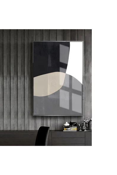 Harikabirev HARİKABİREV|SİYAH-GRİ SOYUT MODEL 2 |ÇERÇEVELİ TEMPERLİ CAM TABLO TEKLİ DİKEY