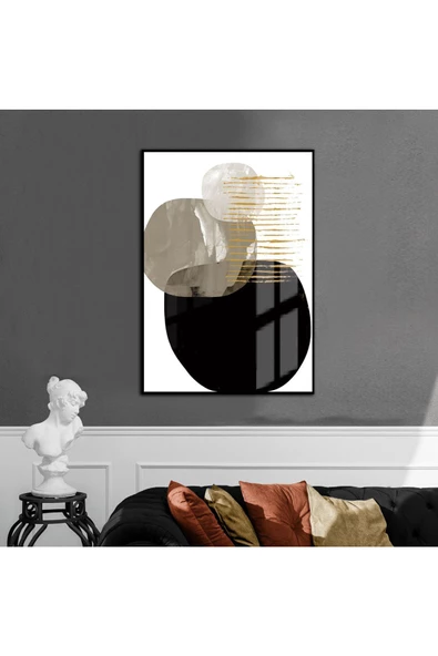 Harikabirev HARİKABİREV|SİYAH-SARI-BEYAZ SOYUT MODEL 2 |ÇERÇEVELİ TEMPERLİ CAM TABLO TEKLİ DİKEY