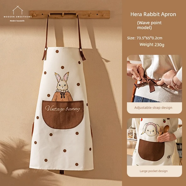 Hera Tavşan Desenli Mutfak Önlüğü - Dalga Desenli, Su Geçirmez ve Yağ Tutmaz