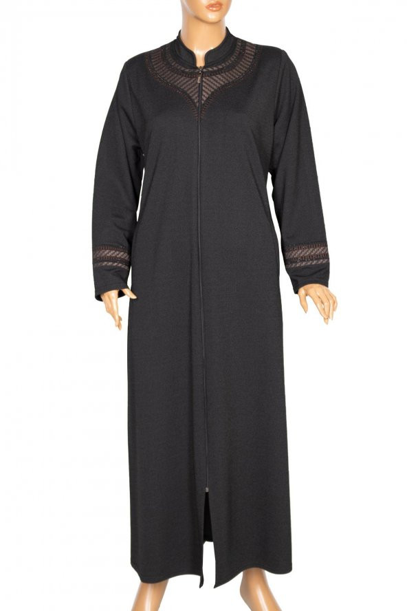 Ana Sayfa Giyim & Aksesuar Kadın Tesettür Giyim Kap Pardesü Hesna Kadın Kamer Mevsimlik Nakışlı Fermuarlı Siyah Pardesü