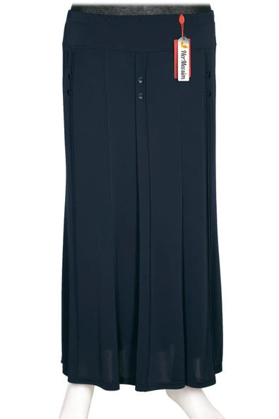 Hesna Kadın Pelin Krep Kumaş Süs Düğmeli Astarlı Lastikli Lacivert Etek
