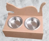 Hobi ERC 90368 MODEL Kedi Mama ve Su Kabı Ahşap MDF HAM Paslanmaz Tabak El Yapım