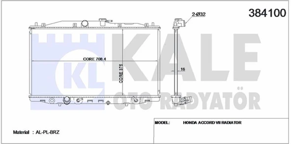 Honda Motor Su Radyatoru Honda Accord VIII 03>08 Otomatık (375x708x16) - Kale 384100