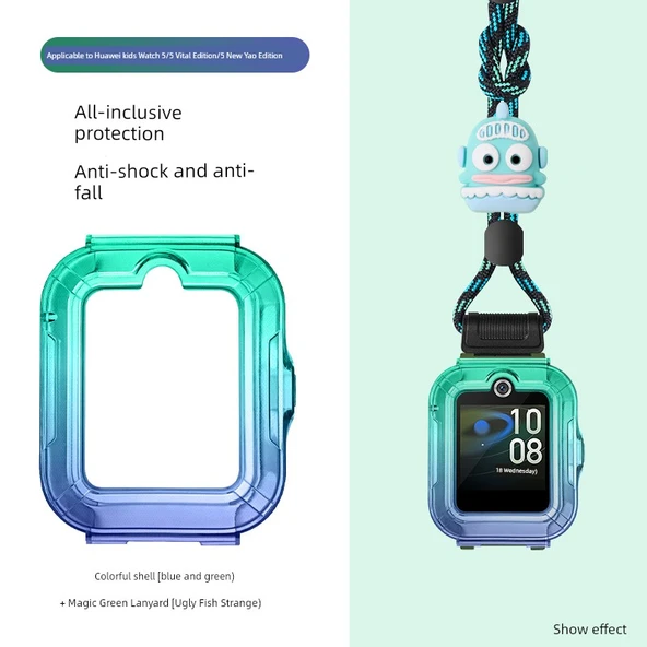 Huawei Çocuk Saati 5 Renkli Gradyan Kılıf İpli - Mavi Yeşil Ucube Balık, 5/5 Vitality Edition