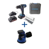 Hyundai HSO202 Akülü Zımpara 20V (Aküsüz) + HPA202 20V Li-ion Vidalama Çift Akülü Set