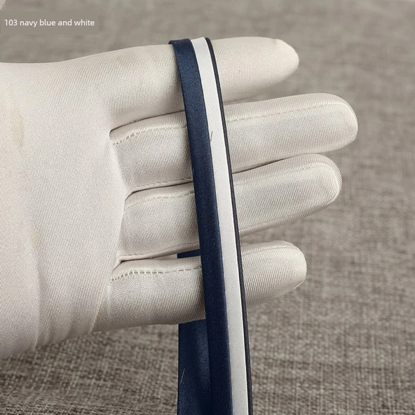 İki Renkli Yapay İpek Saten Biye Şerit - Koyu Mavi (103 Tibet Mavisi ve Beyaz 5 m)