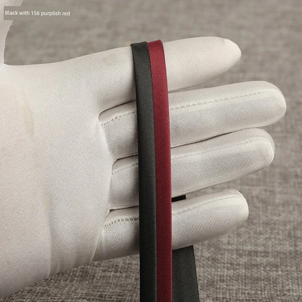 İki Renkli Yapay İpek Saten Biye Şerit - Siyah (Siyah + 156 Bordo 5 m)