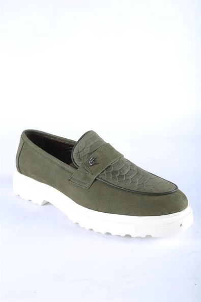 İntersivin Erkek %100 Deri Beyaz Taban Haki Ayakkabı