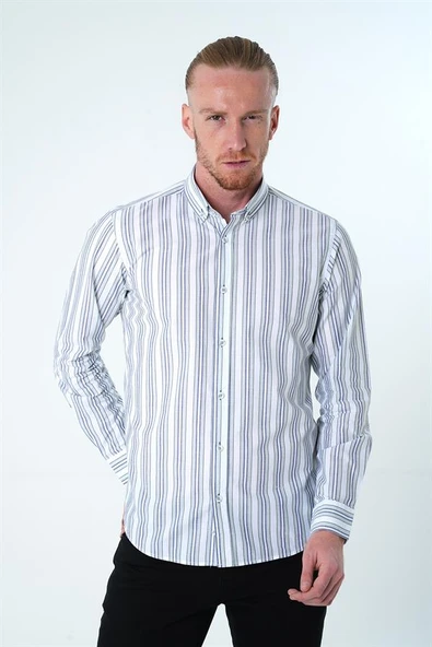İntersivin Rahat Kalıp Çizgi Detaylı %100 Pamuk Erkek Gömlek