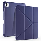 iPad Pro 11 inç M4 2024 Uyumlu Kılıf Üçgen Katlanabilir Kalem Şarj Bölmeli Kılıf A2836 A2837 A3006 Lacivert