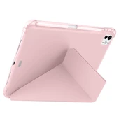 iPad Pro 11 inç M4 2024 Uyumlu Kılıf Üçgen Katlanabilir Kalem Şarj Bölmeli Kılıf A2836 A2837 A3006 Pembe