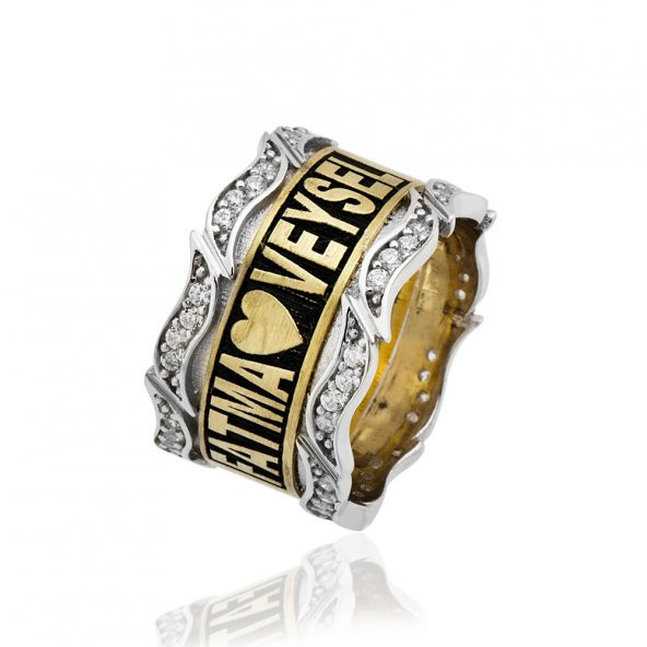 - İsim Yazılı Zirkon Taş İşlemeli Yaprak Motifli 925 Ayar Gümüş Bayan Alyans