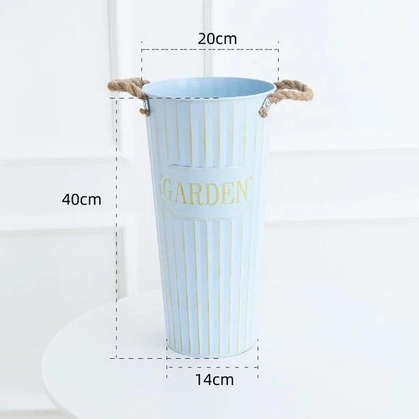 İskandinav Demir Çiçek Kovası Vazo - Retro Gök Mavisi - 40cm