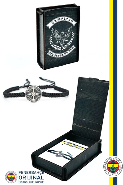Fenerbahçe Orijinal Lisanslı Fb Logo Makrome Siyah Bileklik Kanarya Baskılı Hediyelik Ahşap Kutulu