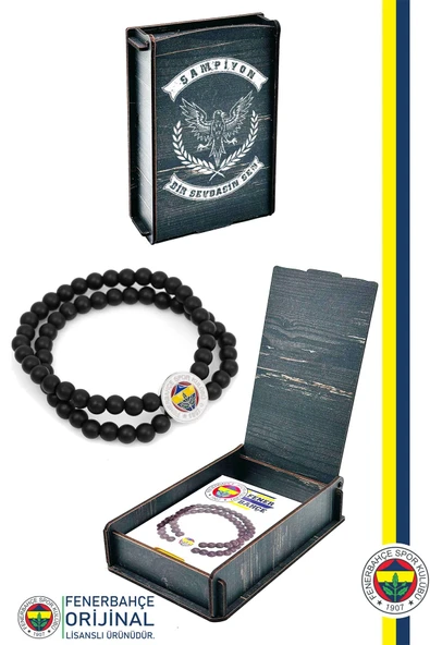 Fenerbahçe Orijinal Fb Logo Çiftli Mat Onix Doğaltaş Bileklik Kanarya Baskılı Hediyelik Ahşap Kutulu