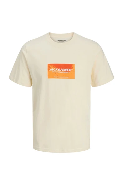 JACK JONES Erkek Sarı Ön Baskılı Kısa Kollu Tişört 12276411
