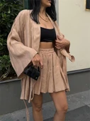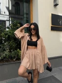 - JAKARLI KİMONO - ŞORT TAKIM - Bej