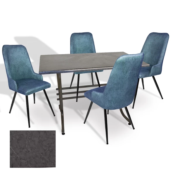 Japon Werzalit - Çırağan Mutfak Masa Takımı (80x140) - (Grey Marble - Mavi)