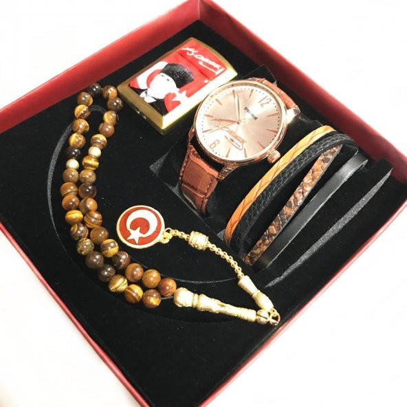 K.Atatürk İmzalı Erkek Kol Saati Tesbih ve Çakmak Kombini
