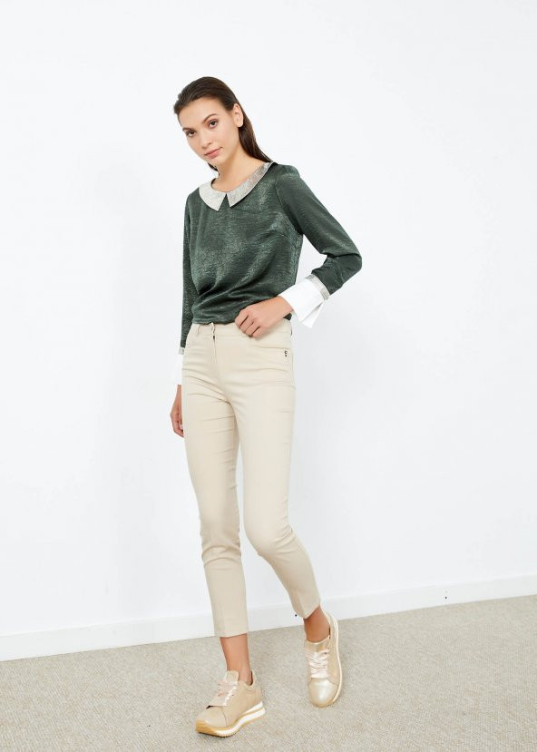 Kadın Bej 5 Cepli Dar Paça Pantolon