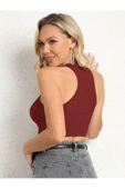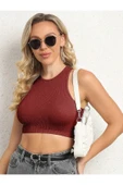 Kadın Bisiklet Yaka Melanj Bordo Renk Crop Top Bluz
