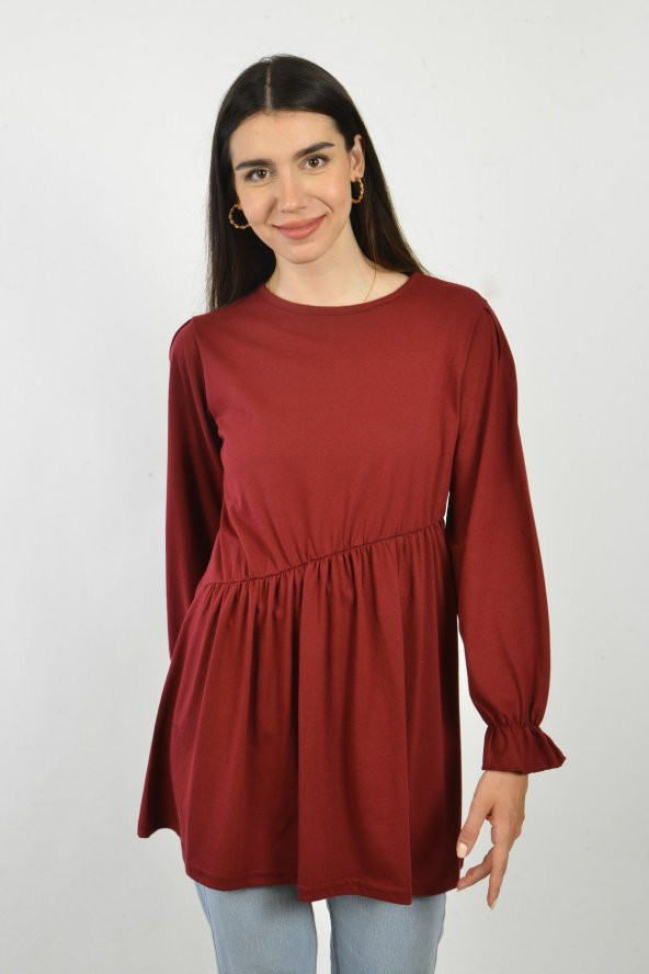 Kadın Bordo Çapraz Dikişli Kolu Lastikli Tunik