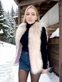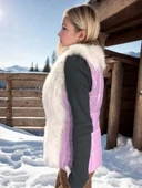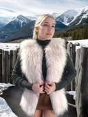 - Kadın Fermuarlı Koyun Derisi Tilki Kürkü - Beyaz