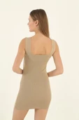 Ana Sayfa Giyim & Aksesuar Kadın Giyim Elbise Günlük Elbise Kadın Kare Yaka Midi Boy Likralı Polelit Elbise - Bej
