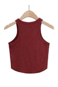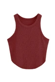 Ana Sayfa Giyim & Aksesuar Kadın Giyim Bluz Kadın Oval Etekli Melanj Bordo Renk Bisiklet Yaka Crop Top Bluz