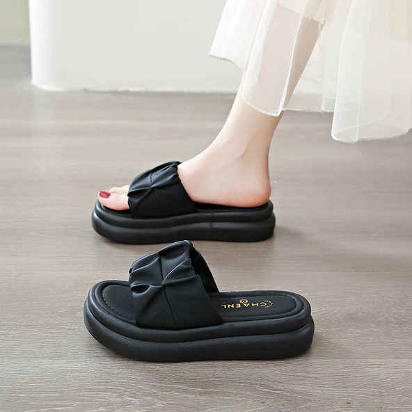 Kadın Platform Topuklu Terlik Sandalet (Siyah)