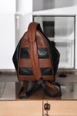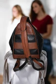 Kadın Sırt Omuz Çantası Saka Model Hakiki Deri Kahverengi Siyah