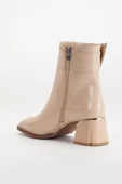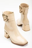 - Kadın Topuklu Bot Bej Klasik Rugan Tokalı Vardola Taban