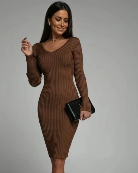 Kadın Uzun Kollu Geniş V Yaka Triko Midi Boy Elbise
