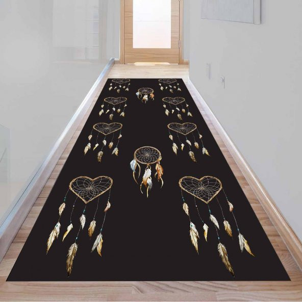 KADSER SİYAH TÜYLER AZTEK 3D DEKORATİF MODERN YOLLUK HALI