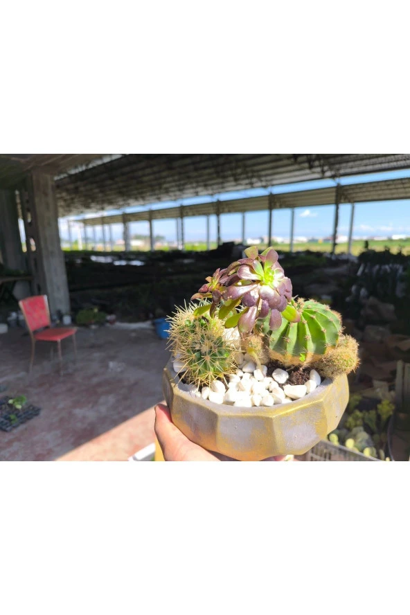Kaktüs ve sukulent aranjmanı beton saksıda 001
