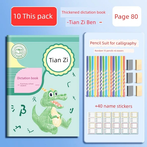 Kalınlaştırılmış Tian Zi Ben Defteri (10'lu Paket) - Kalem ve Silgili