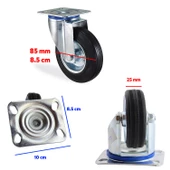 Kama Oynak Tablalı 80 x 25 mm Teker Siyah Burçlu Ağır Yük Tekeri Frensiz 1 Adet